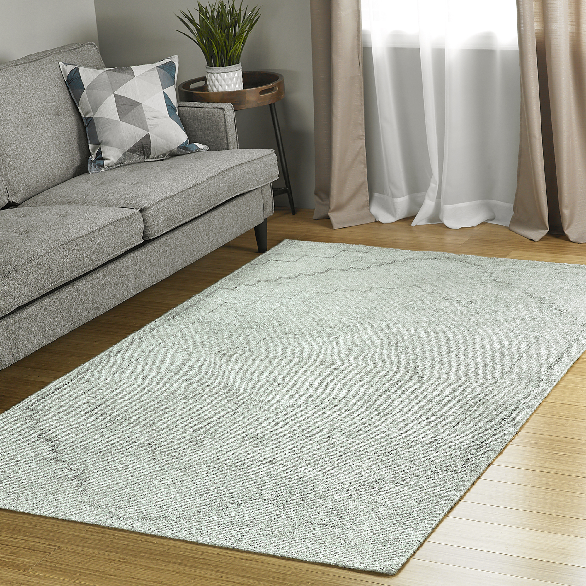 Tibetan in style, the exaggerated simple patterns of the Solitaire Collection are sure to add interest to any room. Each pattern is done in a complimentary contrasting color creating a dramatic look. Hand loomed using primitive dyed yarn crafted from Bamboo Silk these rugs provide a soft texture and have a slight shimmer. Each of these single pile rugs is serged by hand. Kaleen’s hand loomed rugs are made using 100% Bamboo silk. Due to their thick piles and construction, loomed rugs are great to use in heavy traffic areas and will provide beauty for many years to come. Custom Sizes Available.
